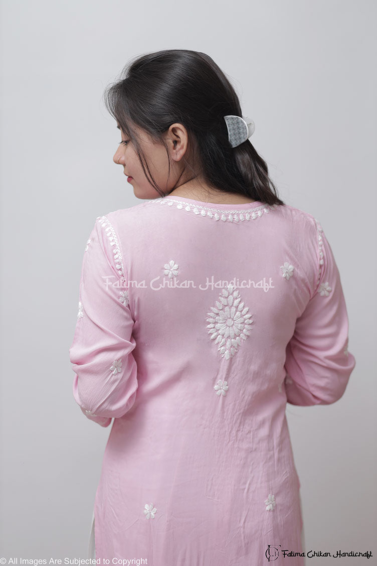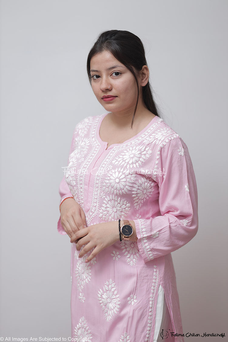 PINK AYAAT MODAL COTTON STRAIGHT CHIKANKARI KURTI
