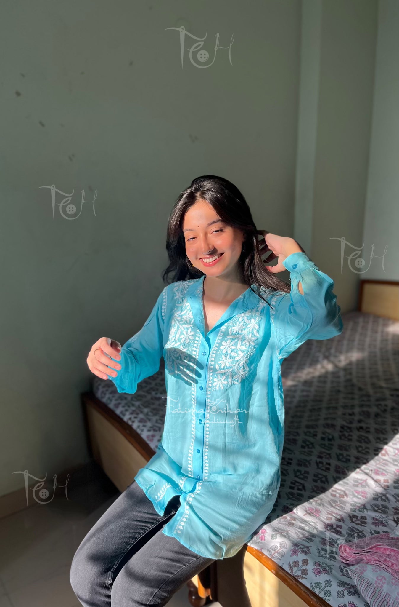 MADHURI MODAL STRAIGHT CHIKANKARI SHORT SHIRT