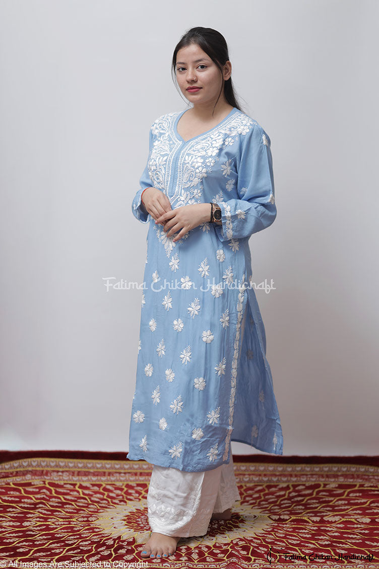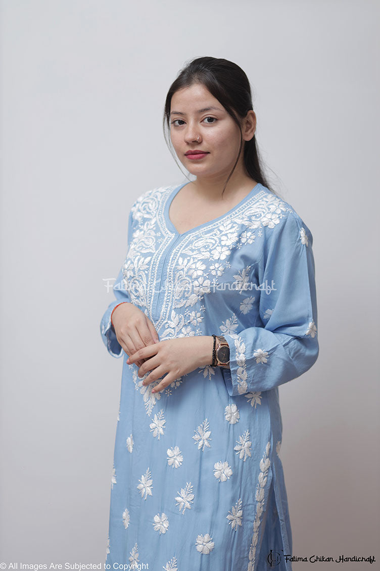 LIGHT BLUE MARIA MODAL STRAIGHT CHIKANKARI KURTI