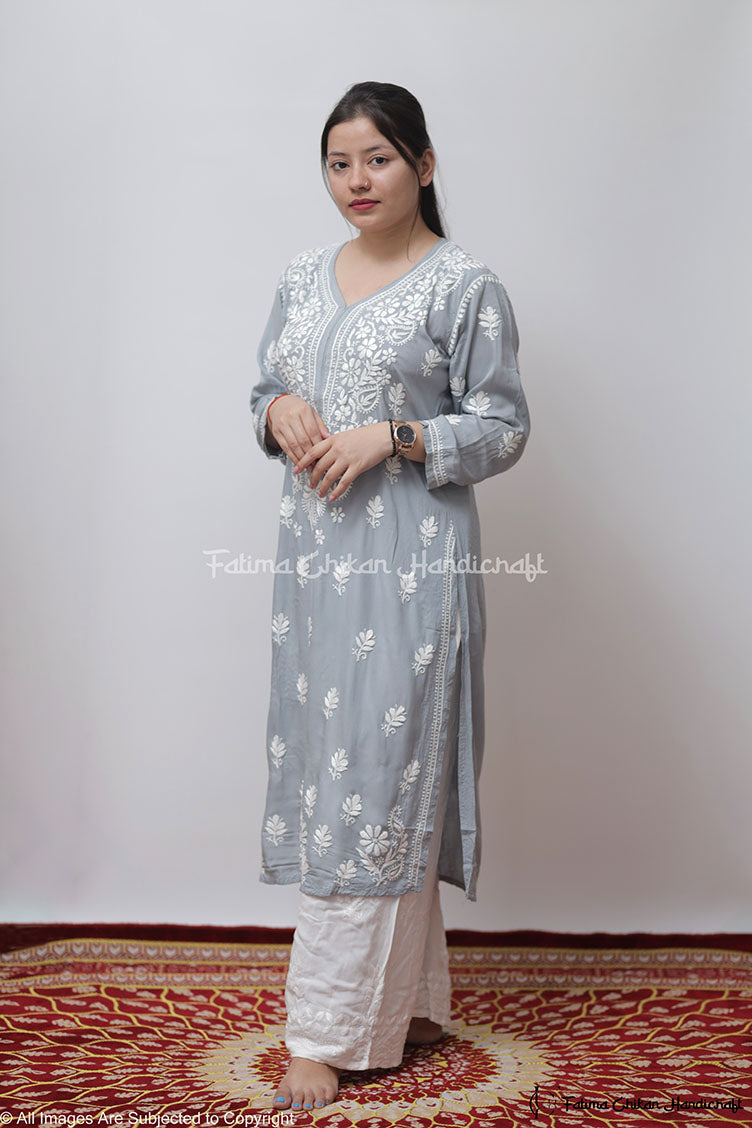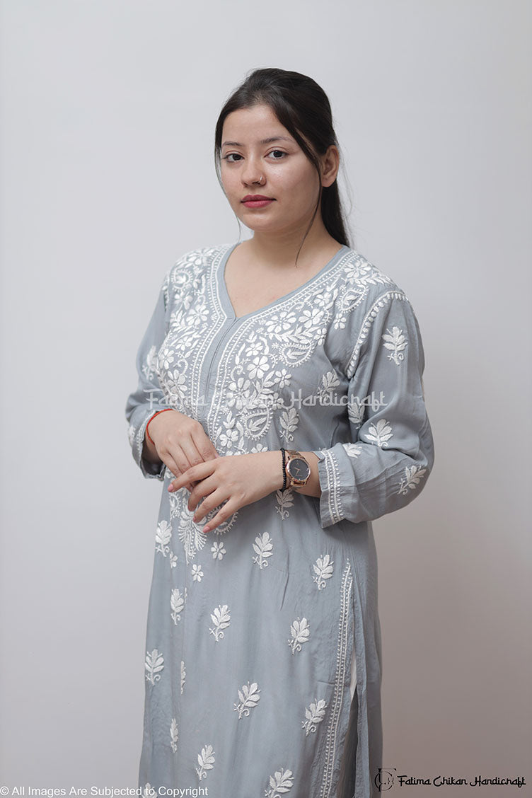 GREY MARIA MODAL STRAIGHT CHIKANKARI KURTI